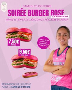 🏀🍔 SOIRÉE BURGER ROSE – SAMEDI 25 OCTOBRE ! 🎀